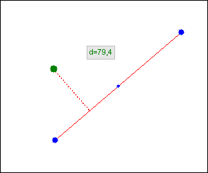 Punkt und der Linie, die durch die beiden blauen Punkte definiert
