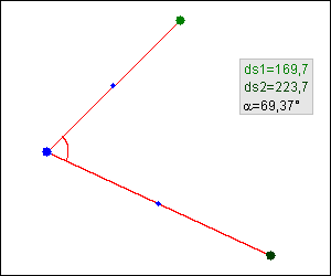 - Messung des Winkels zwischen zwei Geraden (der Schnittpunkt