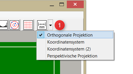 Um das Beispielbild (Fußballplatz) zu vermessen, wählen Sie nun über das Maßstabs-Icon den Maßstabs-Typ Orthogonale Projektion aus (1).