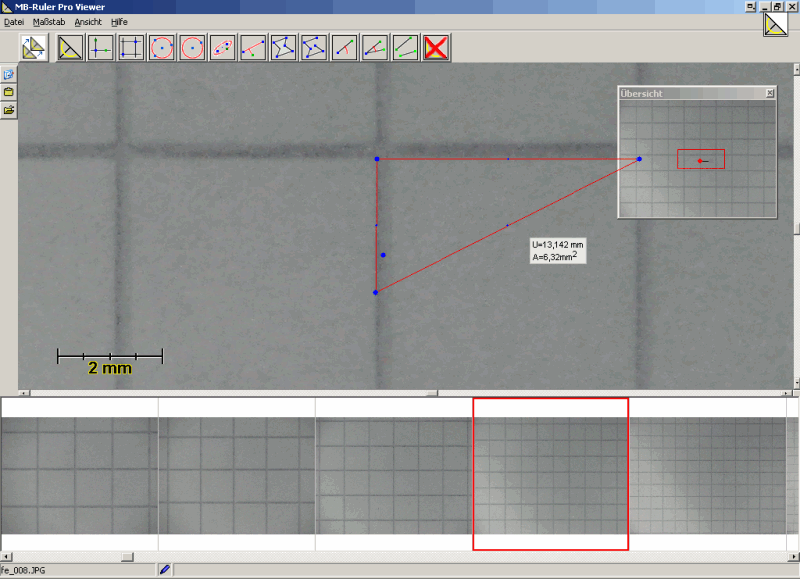Die zu vermessenden Bilder können eingelesen, vermessen, mit